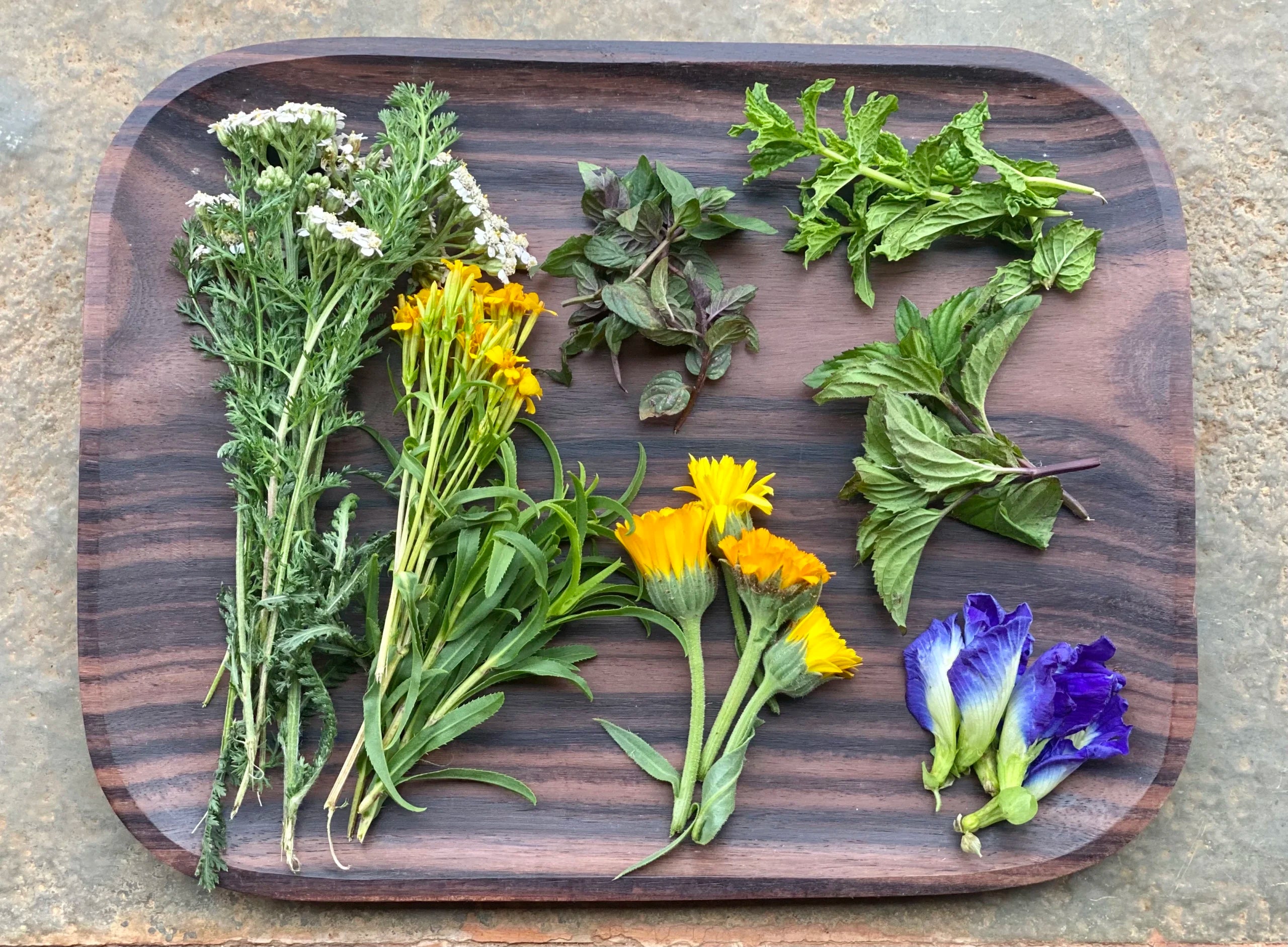 Our herb garden on the farm was originally established as an aid for the biodynamic regeneration of our land. Yarrow to improve the uptake of trace elements, Nettle to improve soil health, Chamomile to bring stability, and Dandelion to improve the silica forces. A lot of culinary herbs were also established for home use to start with.