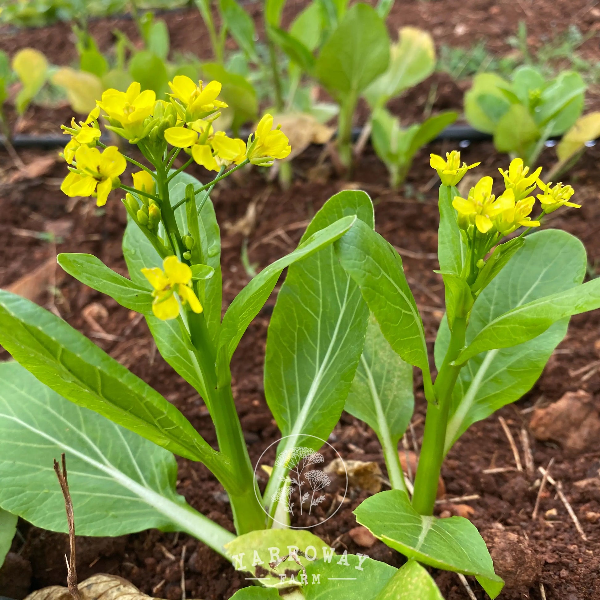 A delectable Chinese vegetable that is known for its tender and delicious edible leaves, stems and flowers. It has dark green oval shaped leaves on shiny green stalks and bright yellow flowers that are just as sweet and fresh. Typically cooked before eating, either by boiling, steaming or stir-frying.