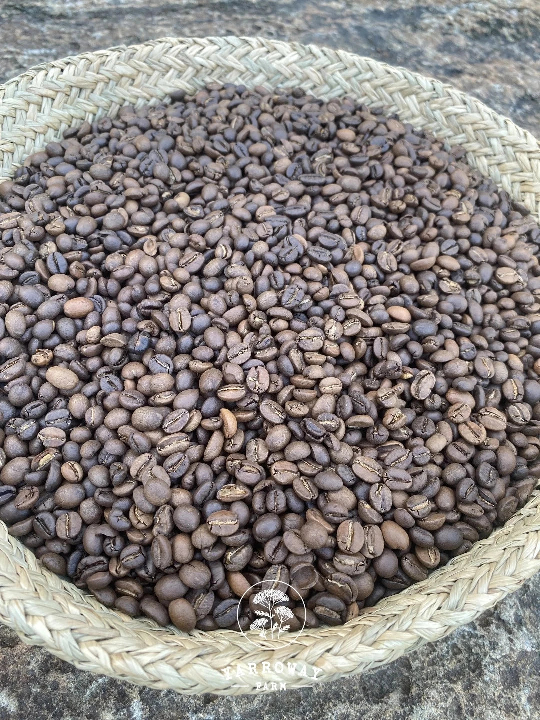 A blend of our arabica and robusta beans, grown under rosewood and jackruit shade. This experience begins with fine arabica aromas, and develops into a molasses cured tobacco finish. Medium Dark Roast.