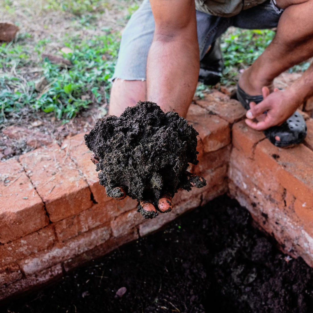 The following ingredients are used to make this preparation: cow dung (nitrogen), eggshell powder (calcium), rock dust/wood ash (phosphorus), BD Preps 502-507. We mix and bury these ingredients in their correct proportions for 3-4 months to make this super charged compost that can be used on plants. Benefits: Growth stimulation, and intermittent feed after one month of plant growth.