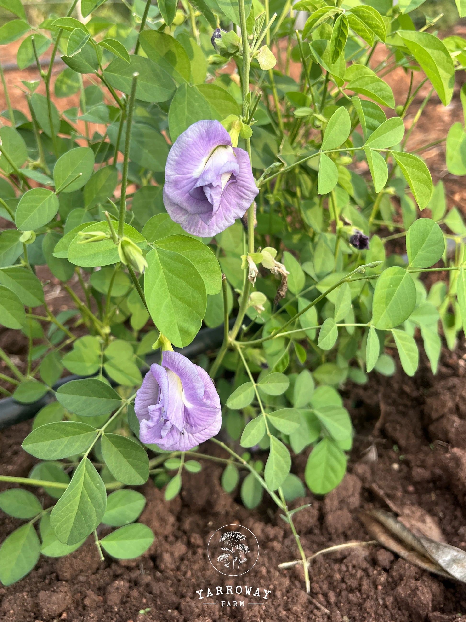 These stunning double-petaled lavender colored blooms are an extra select strain from Thailand. Heat and humidity-tolerant flowering vine adapts beautifully to diverse garden spaces. Same culinary and herbal uses as the dominant blue variant. Thrives in well-draining soil and partial to full sun.