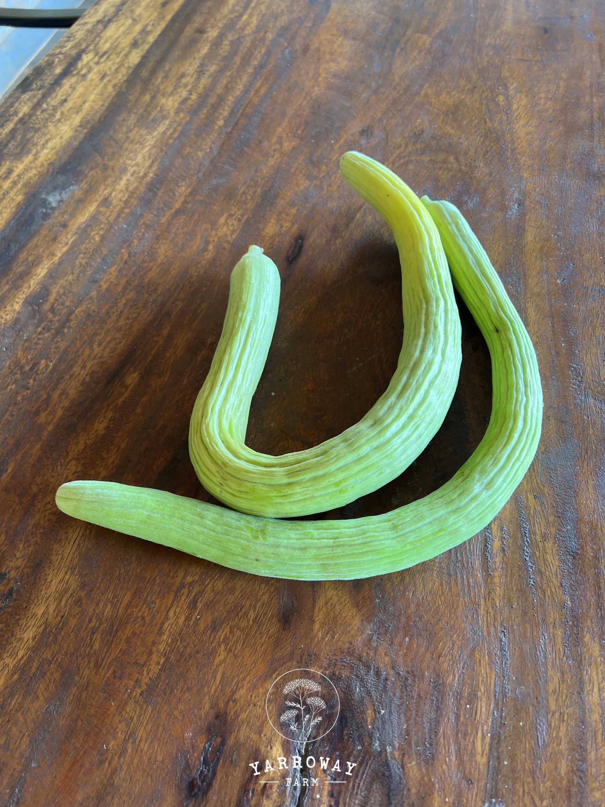 Super long melon, that tastes like cucumber. The skin is very thin, light green, and bumpless. It has no bitterness and the fruit is almost always used without peeling. Thrives in hot weather. Trellis this fast-growing large variety to give the fruits plenty of room to develop.