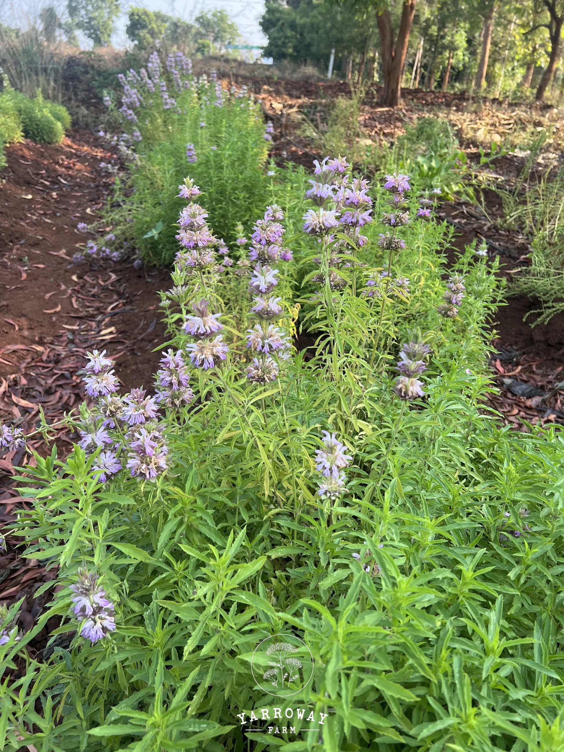 Monarda citriodora. The lance shaped leaves have a distinctive citrus or lemony scent with a wonderful taste. The dried flowers can be used in tea. Grown as an ornamental or for its cut flowers. All bergamots are highly attractive to honeybees and other pollinators. Native of the Oswego, New York area.