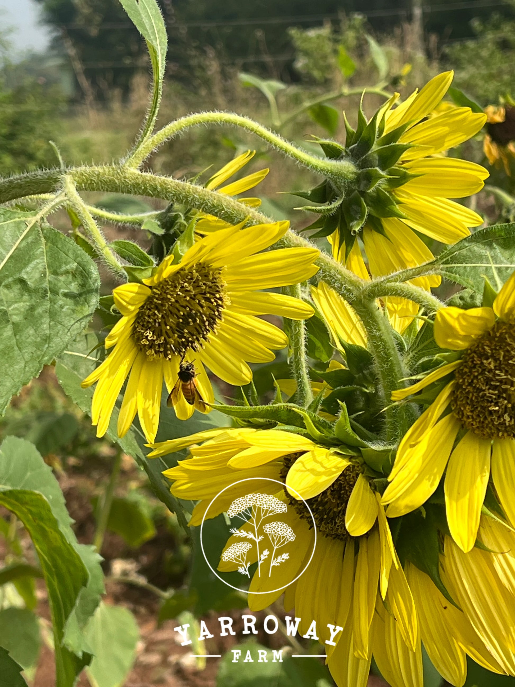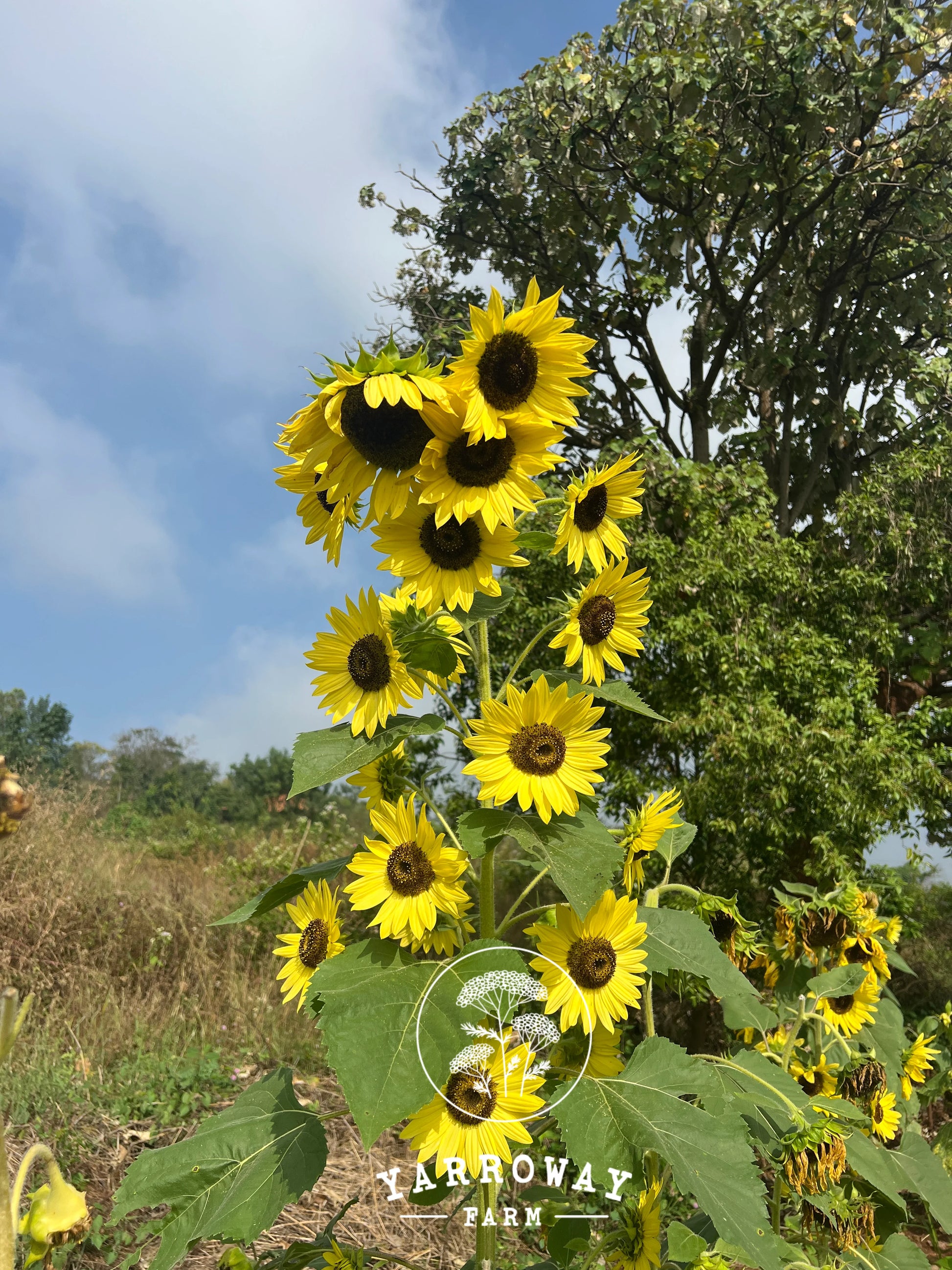 Medium tall sunflowers, with brilliant lemon-yellow blooms, and a chocolate brown center. Plants produce one large 5-7" main flower, followed by smaller branching clusters. This is a very unique heirloom variety, that is easy to grow, drought tolerant, and attracts many friendly pollinators.