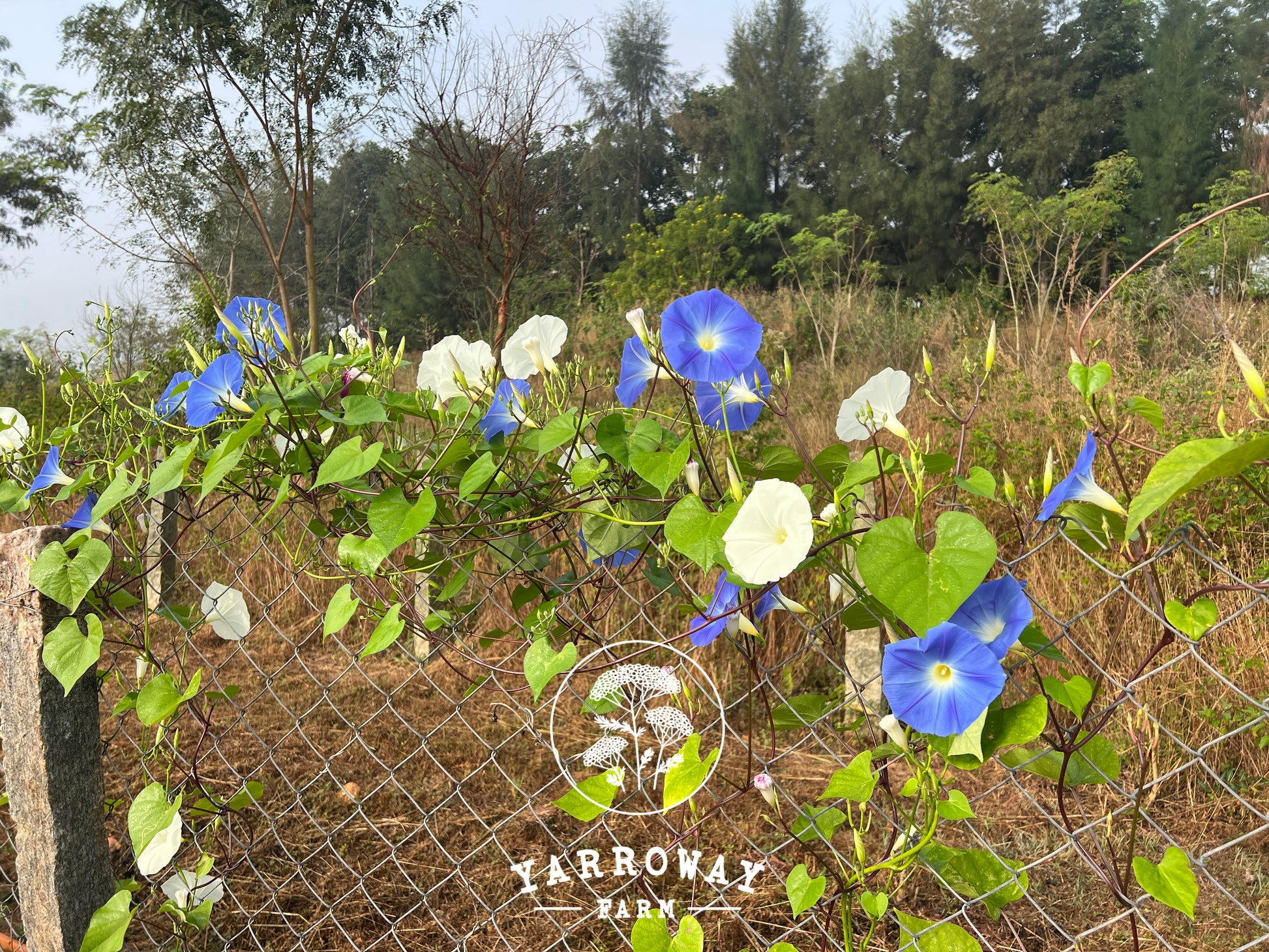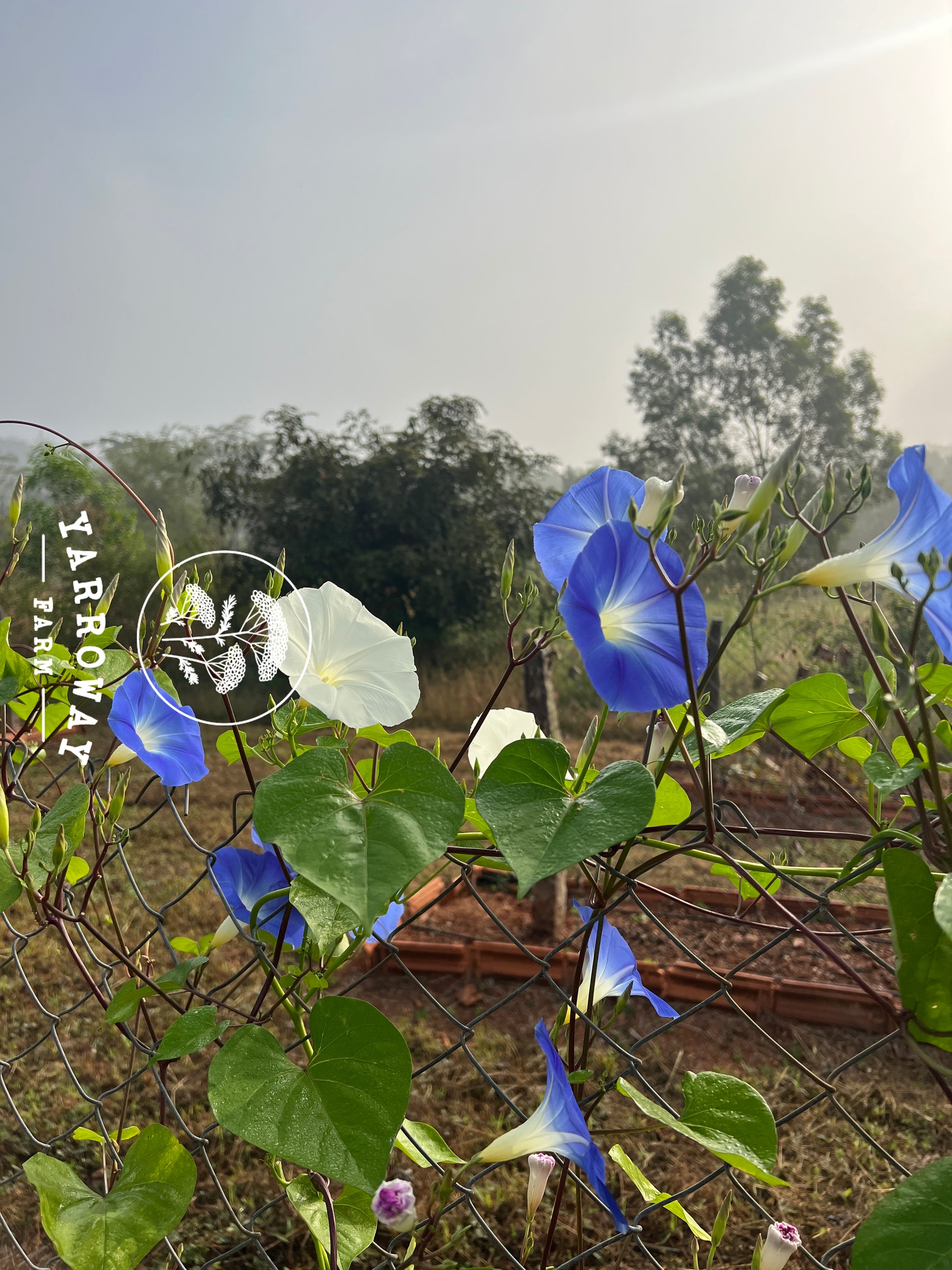Heirloom blend of deep-rich blue and pearly white blooms that open fresh each morning. Each flower lasts one day, opening in the morning and closing in the evening, producing a new show every day. 10' climbing vines with heart shaped leaves, grow best on fences and trellises.