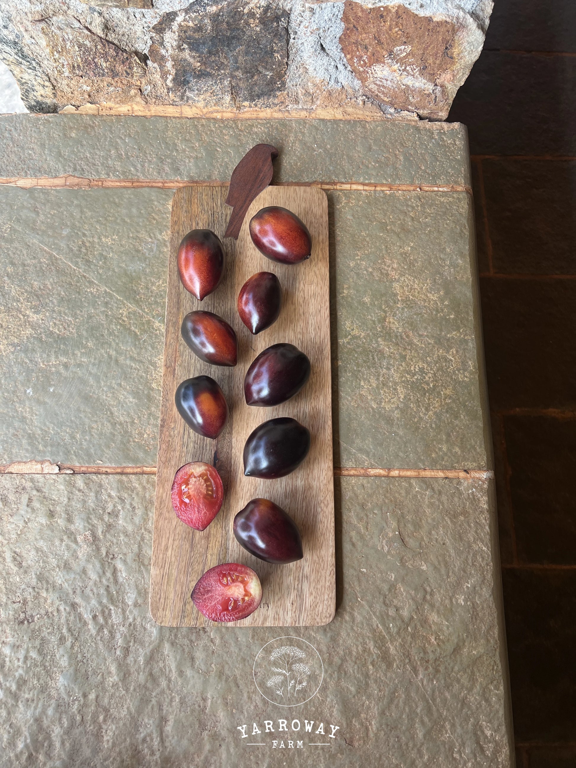 An exclusive variety bred by Dr. Jim Myers and Row 7 Seeds. Myers brought the high anthocyanin trait into a plum tomato, the purple-pigmented skin encasing a deep red flesh.1 Best for sauces and pastes; with layers of sweetness, acidity and rich umami.2 A showstopper packed with phytonutrients! Semi-determinate