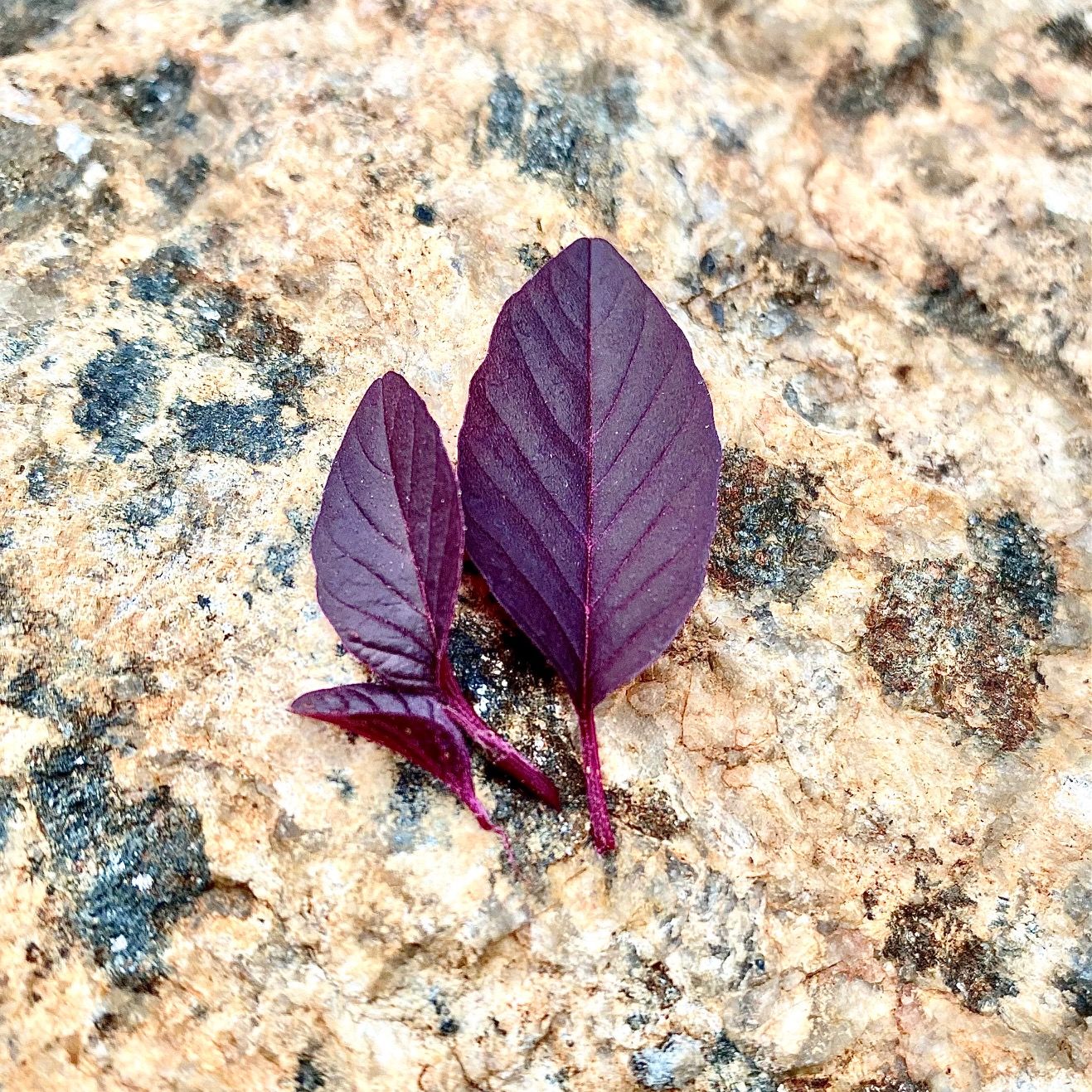 This red variety of amaranthus produces feathery purple-magenta flowers from a central stalk which is packed with white edible seeds. The young leaves are tender, with a nutty and mild taste like spinach. Can get fibrous if harvested late, so enjoy them young and tender for the best taste profile.