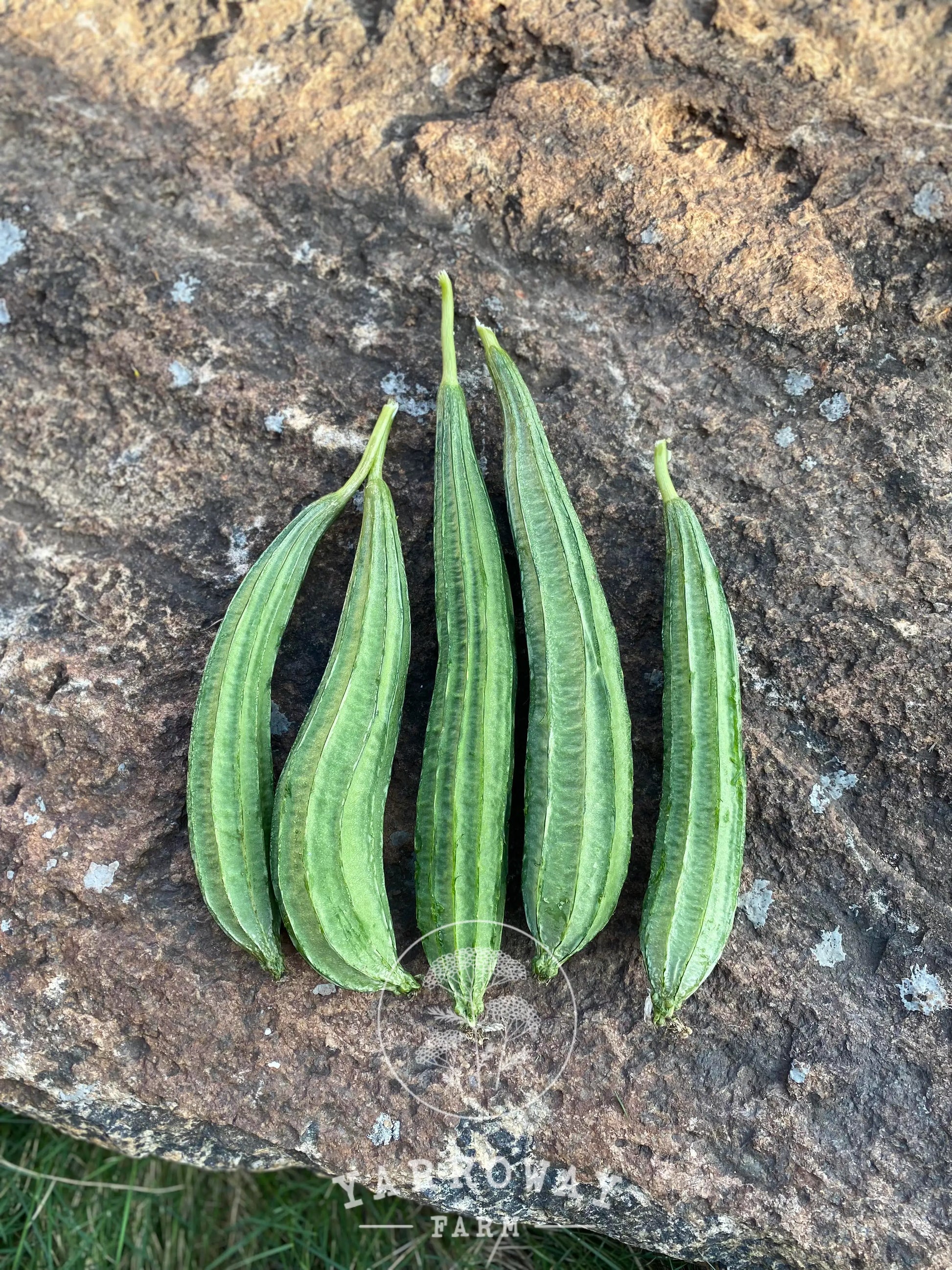 Also called as turai, Chinese okra or angled luffa. This variant is highly productive with 9-12" ridged dark green fruit. A healthy vegetable high in fiber, and minerals. A staple in Indian cuisine, known for its thick flesh and sweet flavor. The skin is a delicacy, which can be ground and cooked too.