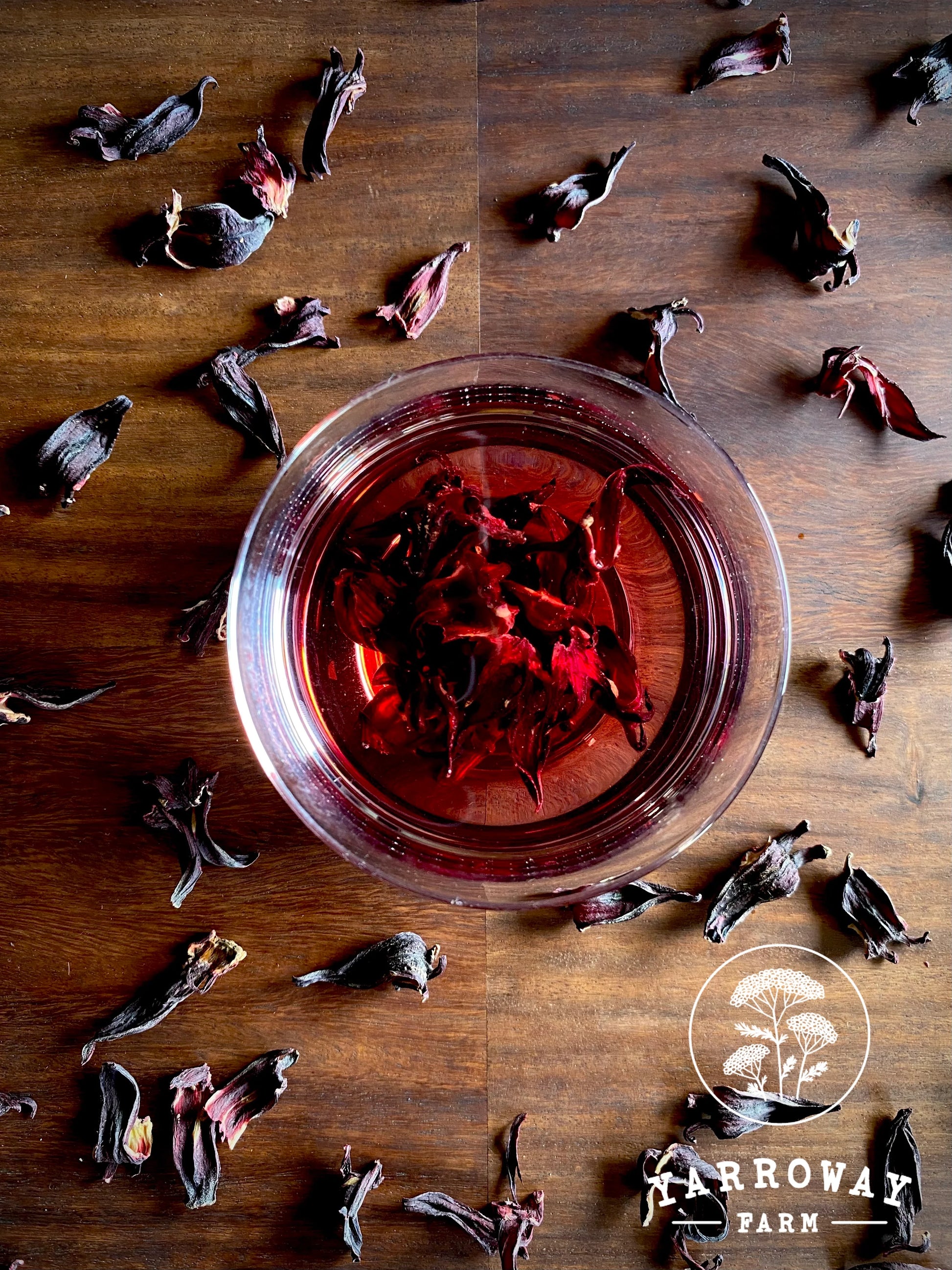 Dried Roselle Calyxes. Deep red in color and has sweet and tart flavors, similar to cranberry. Rich in Anthocyanins.