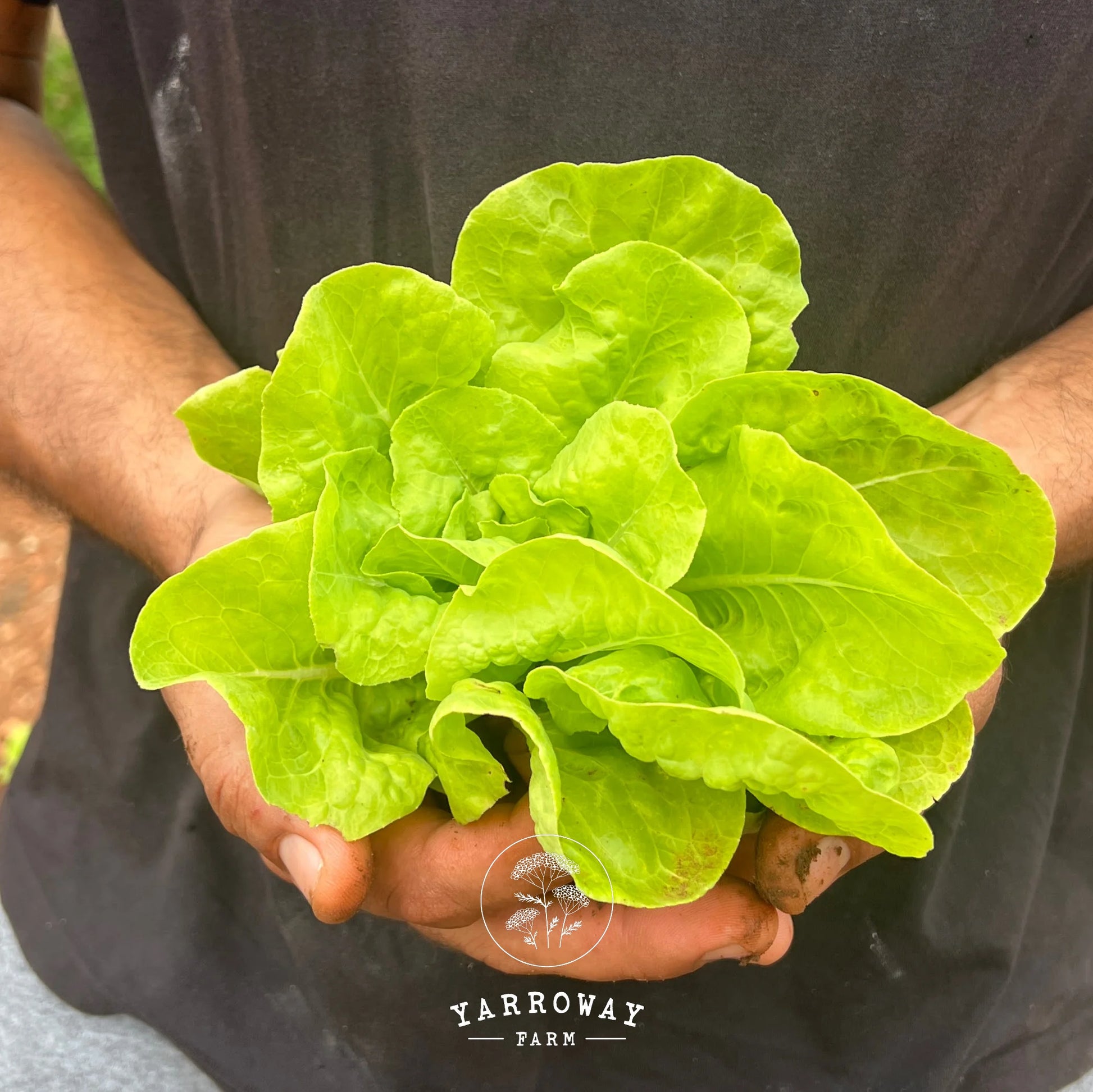 Compact plants produce a miniature butterhead about 4” across. This particular variety dates back to the 1850s, during the 17th and 18th centuries such lettuces were pickled in salt brine for storage. Simply cut in half and drizzled with salad dressing they make a unique and beautiful side salad.