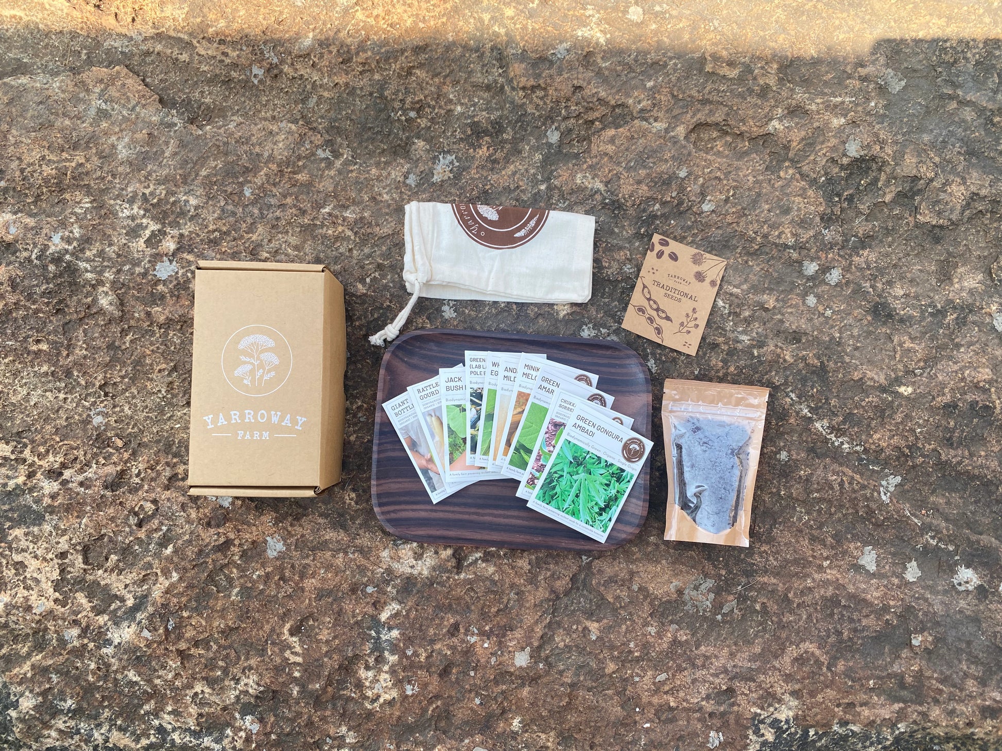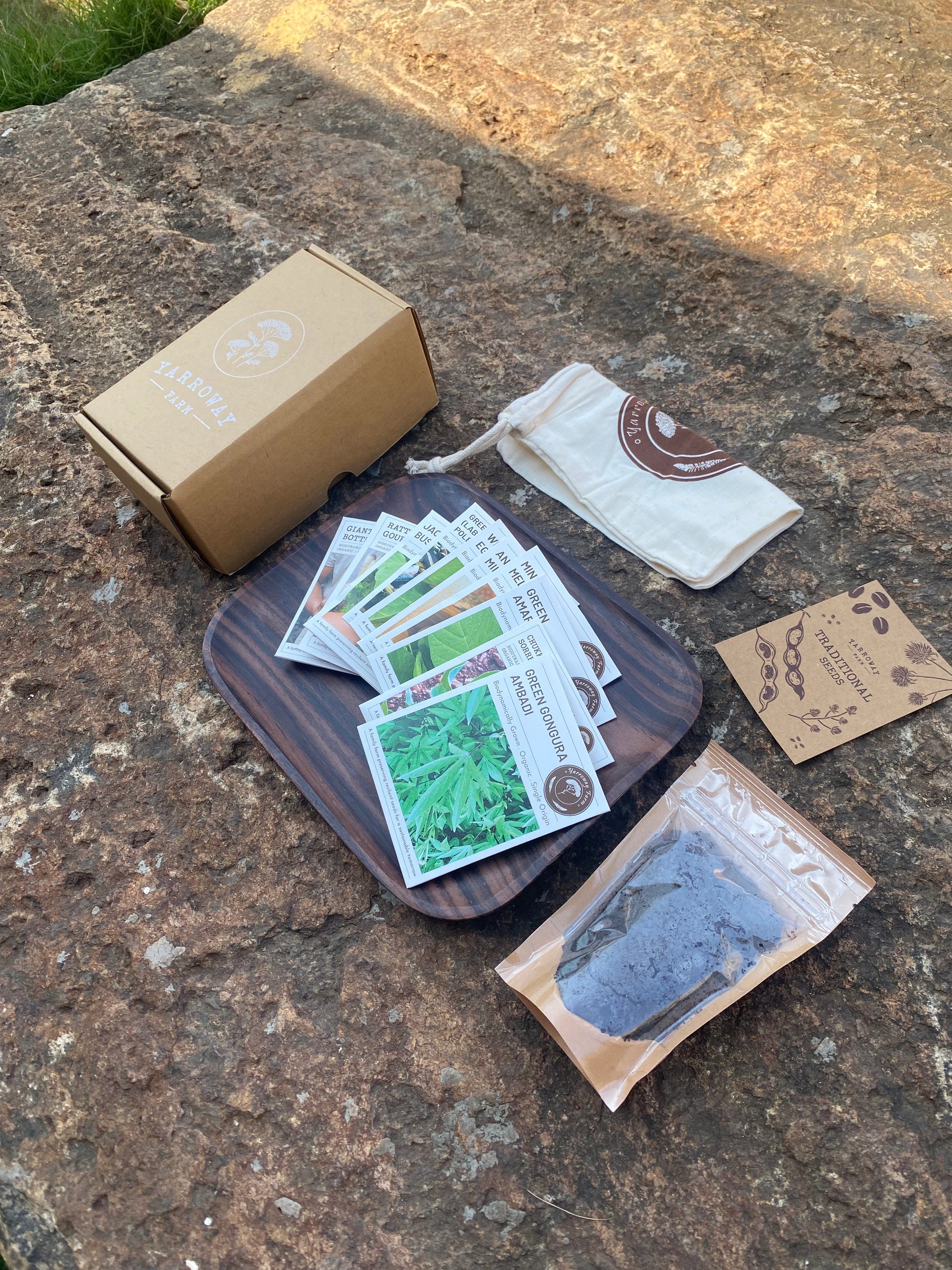The kit includes an organic cotton drawstring bag to hold the seed packets, and a FREE packet of CPP (biodynamic compost) for nourishing your seedlings and plants.