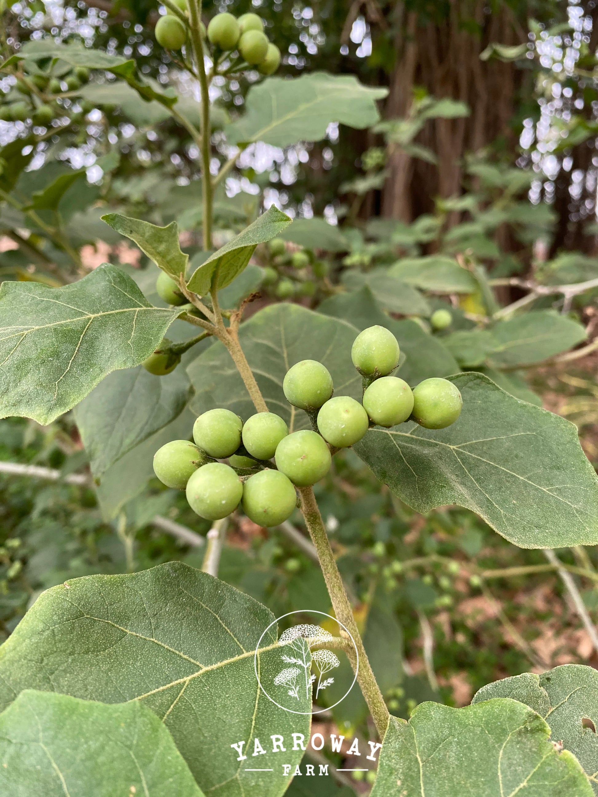 Solanum torvum. Also known as Sundakkai. It is a fast-growing shrub or short-lived perennial that grows about 9-10ft high. Produces small, edible, pea-sized berries that are cooked as a vegetable and used in traditional medicine. The berries should be picked unripe when they are about 1-2" wide.