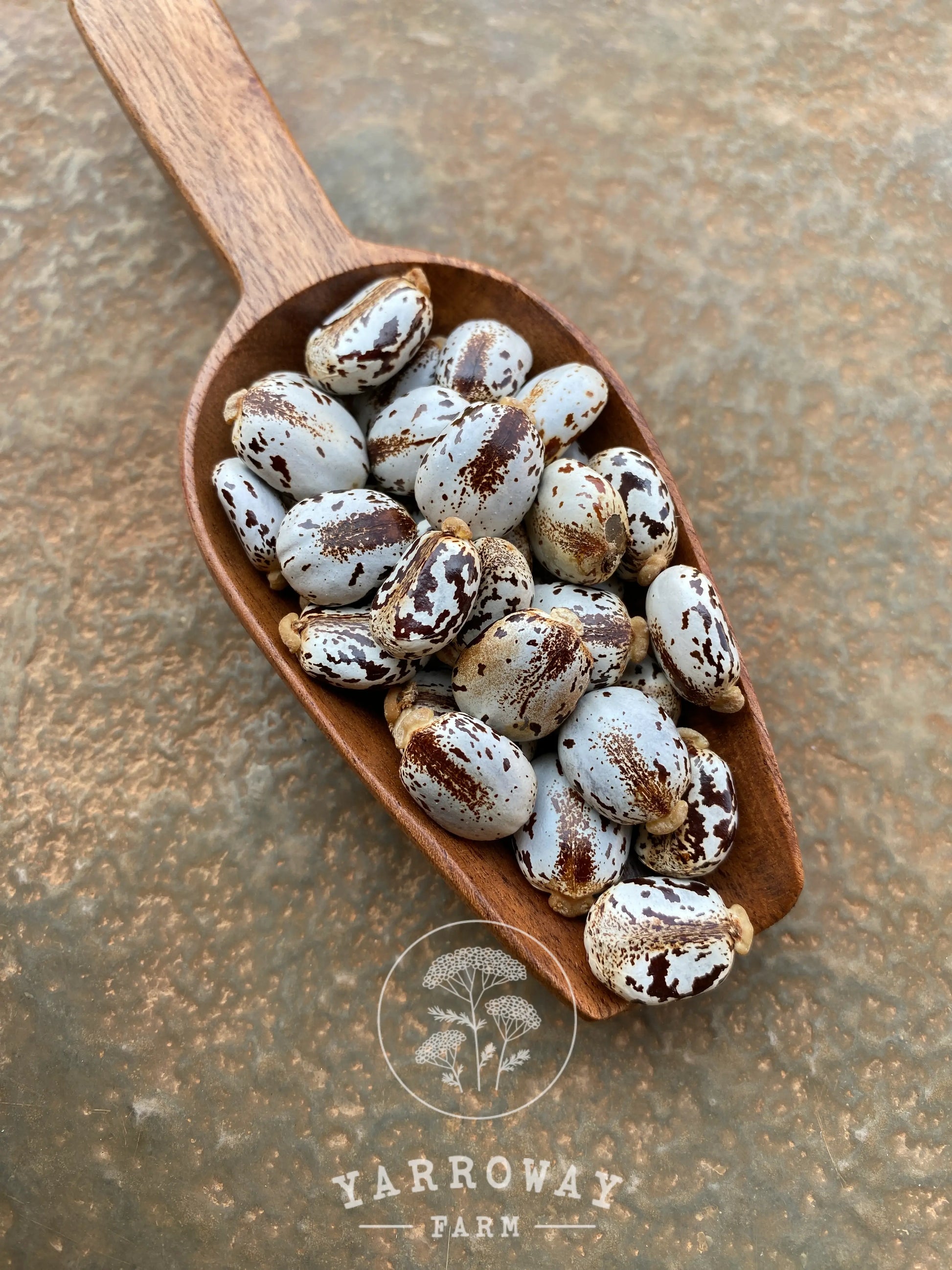 This stunning large white seed variant is a rare in India. Grows to bushy tree with broad green leaves, and acts as a natural barrier while protecting the other vegetable plants from pest attack. Castor plants are medicinal in nature, and chiefly cultivated in India, China, and Brazil for castor oil.