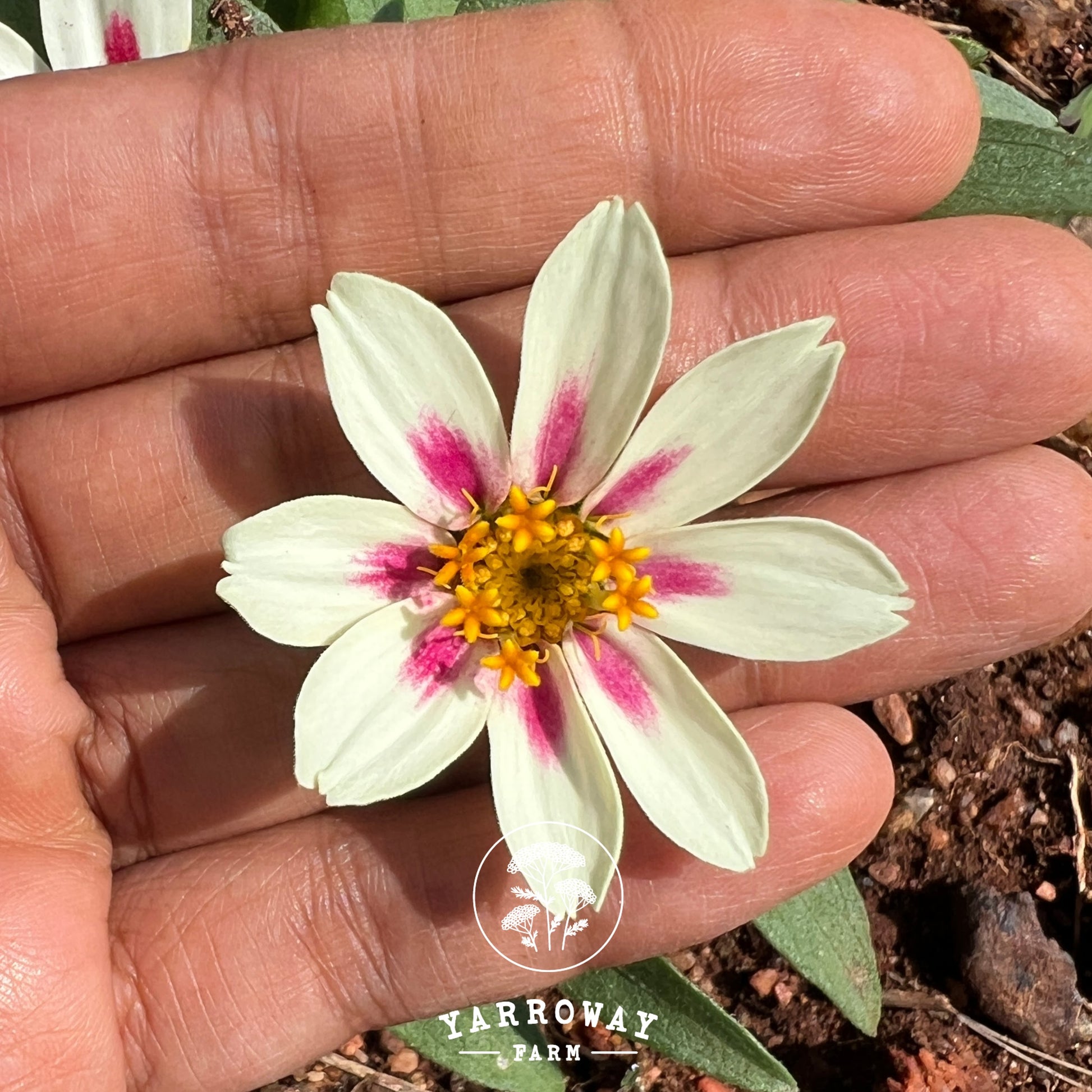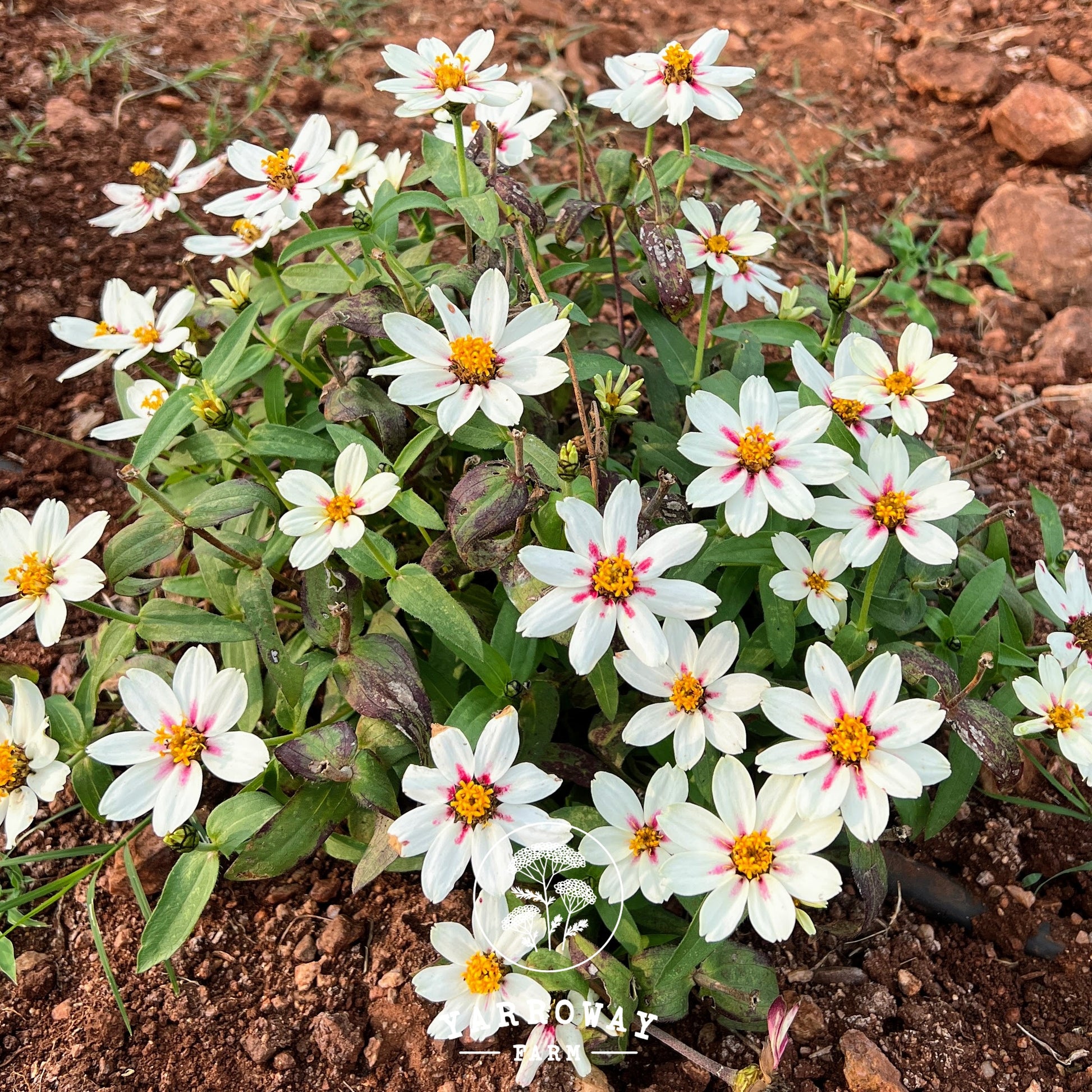 A little compact than most variants, this award winning Zinnia features many snow white flowers, whose center has been brushed with a magenta stripe. A surprisingly long-blooming variety. Plants grow 12-18" high and wide. Heat loving, drought tolerant, and disease resistant.